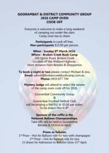 For more information reguarding the Cook Off please contact Glen on 0419 519 068